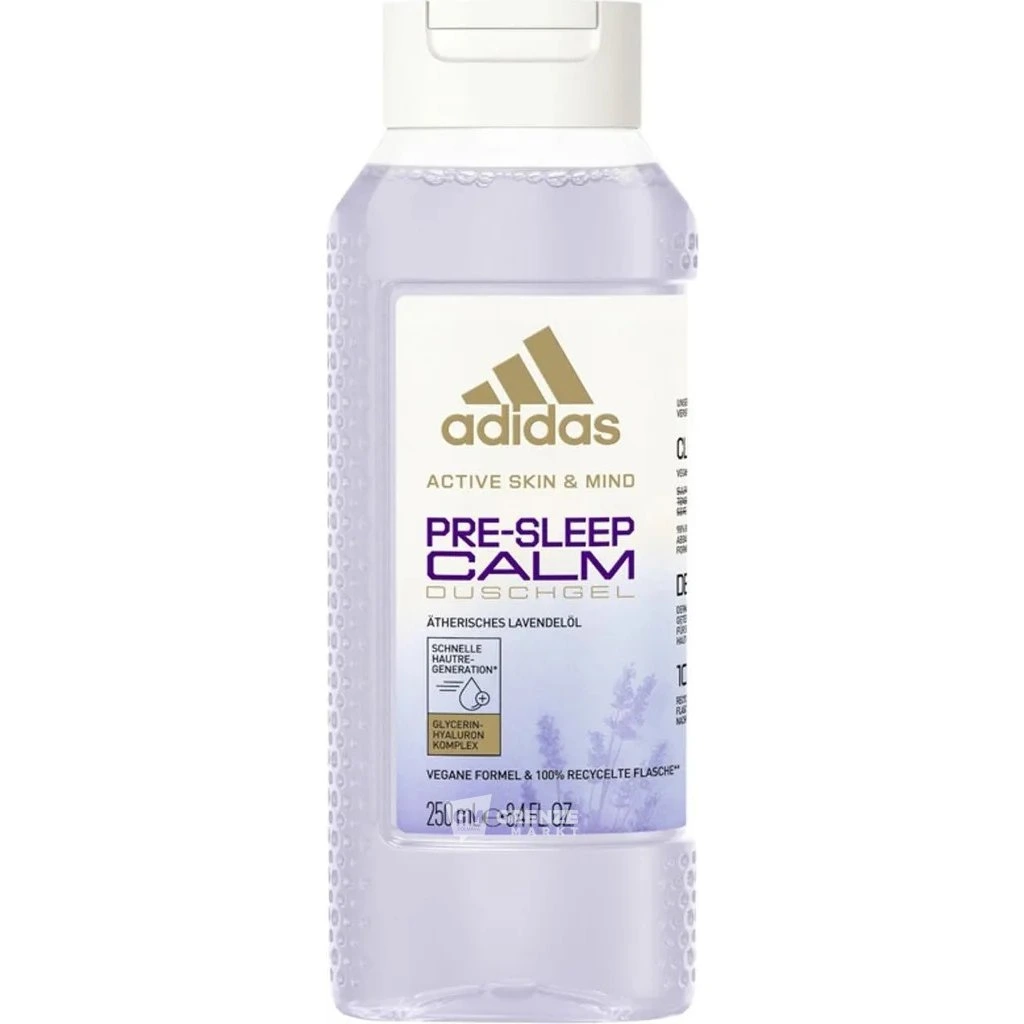 Adidas Pre-Sleep Calm sprchový gel 250 ml je ideální volbou pro ty, kteří si chtějí dopřát hluboký relax po dlouhém dni. Díky přírodnímu levandulovému oleji a jemné vůni pomáhá zklidnit tělo i mysl a usnadňuje usínání. V kombinaci s komplexem glycerinu a kyseliny hyaluronové nejen čistí, ale také hydratuje pokožku a zanechává ji hebkou a příjemnou na dotek, vhodný i pro citlivou pokožku.