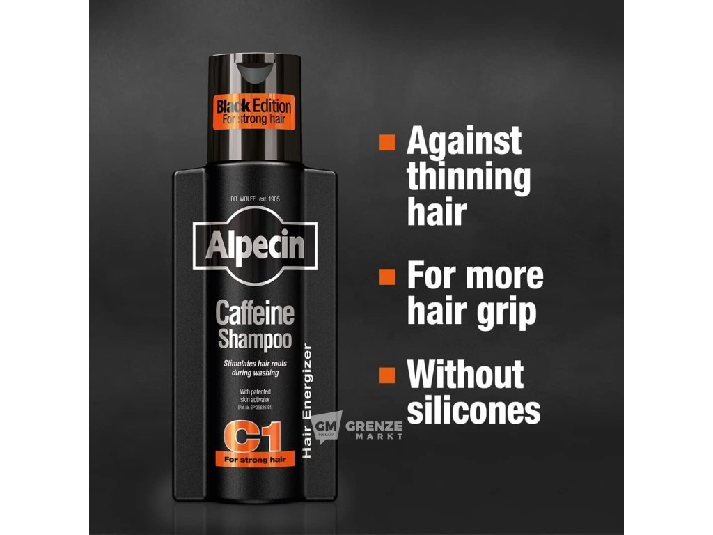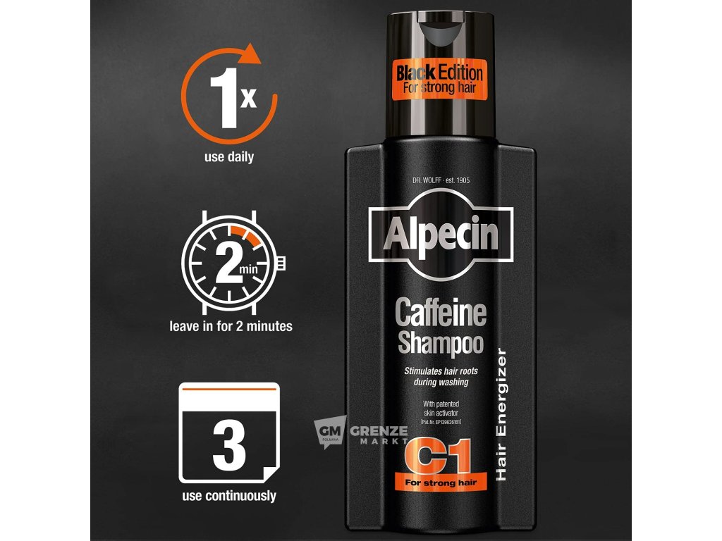 Alpecin Coffein šampon C1 Black Edition 250 ml je ideální volbou pro ty, kdo hledají řešení pro prevenci vypadávání vlasů a stimulaci jejich růstu. Speciální receptura s kofeinem proniká do vlasových folikulů během pouhých 2 minut, čímž zajišťuje efektivní čištění, stimulaci kořínků a zlepšení zdraví vlasů od základu. Design edice Black Edition přináší moderní a elegantní vzhled spolu s jemnou vůní, vhodnou pro muže i ženy.