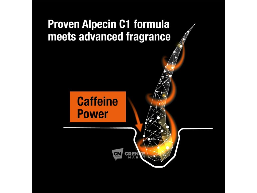 Klíčovou složkou všech produktů Alpecin je kofeinový komplex, který proniká hluboko do pokožky hlavy a podporuje prokrvení. Tím zpomaluje proces dědičného vypadávání vlasů a prodlužuje růstovou fázi vlasů. Kromě toho obsahuje přípravky také další aktivní látky, které zklidňují pokožku a zanechávají vlasy pevnější a zdravější.