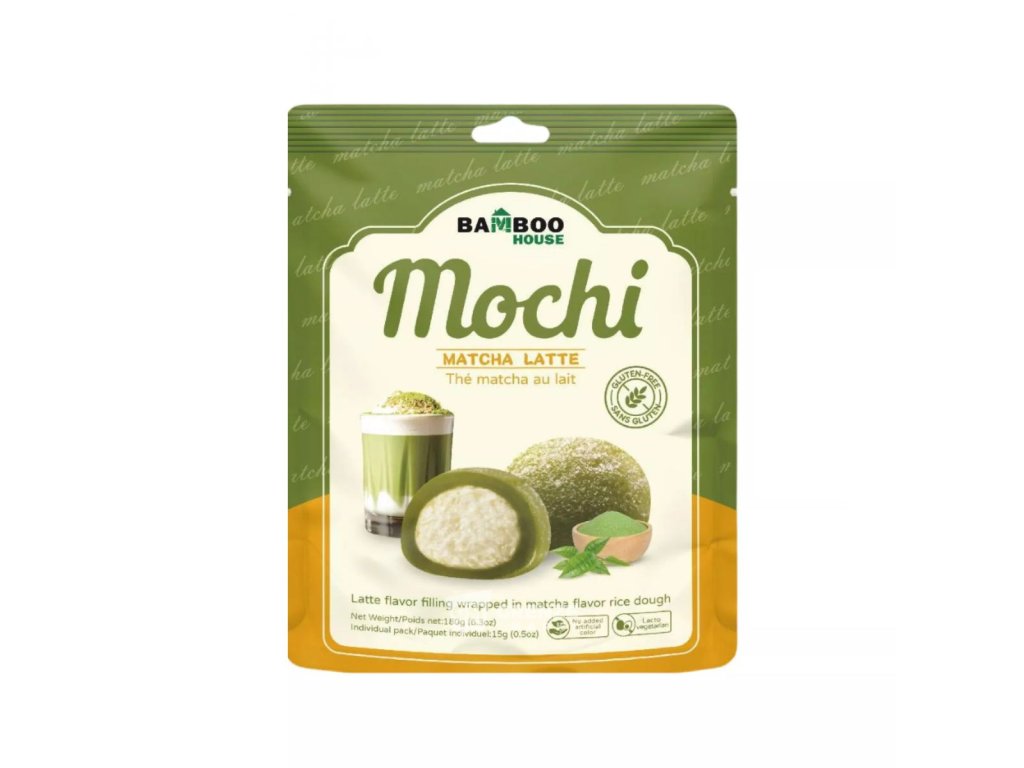 Pokud milujete svěží chuť matcha a jemnou krémovost latte, pak je Bamboo House Matcha Latte japonské mochi rýžové koláčky 180 g ideální dezert právě pro vás. Měkké mochi z lepkavé rýže ukrývá hladkou matcha-latte náplň, která spojuje jemnou chuť zeleného čaje a mléčné sladkosti. Každé sousto přináší autentický zážitek japonské tradice a moderní lahodnosti.