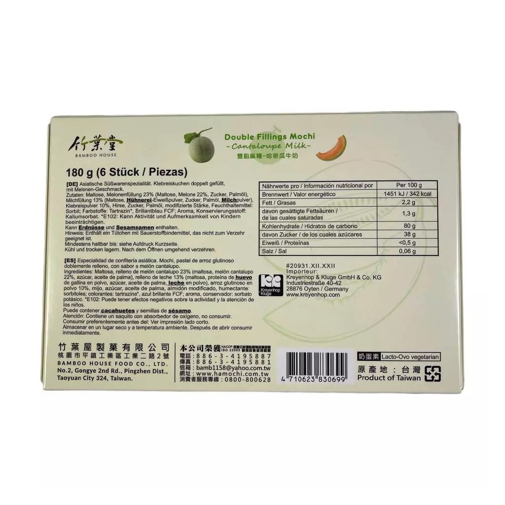 Bamboo House Mochi Cantaloupe Milk 180g je ideálním dárkem nebo lahodným pamlskem k odpolednímu čaji. Jeho sladká a osvěžující chuť potěší i ty nejnáročnější gurmány.