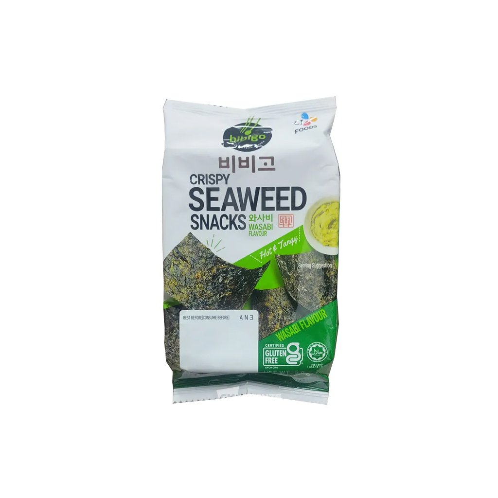 Bibigo křupavé mořské řasy Wasabi 5g přinášejí explozivní chuťový zážitek díky tenkým, křupavým plátkům mořských řas s výraznou pikantní chutí wasabi. Praktické malé balení se hodí na cesty, do práce i jako rychlá zdravá svačinka.
