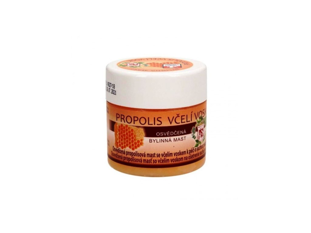 Osvědčená propolisová mast se včelím voskem k péči o suchou popraskanou a svědivou pokožku, po bodnutí hmyzu nebo při oděrkách. Vhodná i na rty.