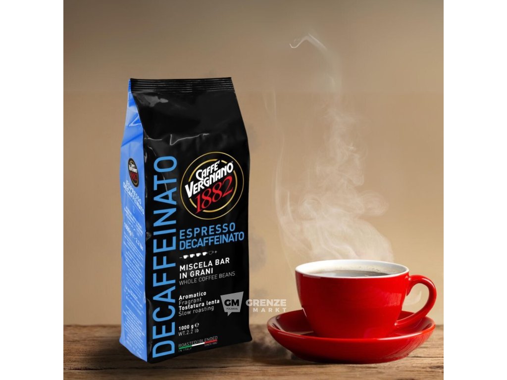 Caffe Vergnano 1882 Espresso Decaffeinato zrnková káva 1 kg přináší plnou chuť pravého italského espressa bez kofeinu. Vybraná zrna 100% Arabica uchovávají přirozenou vůni a harmonii v každém šálku.