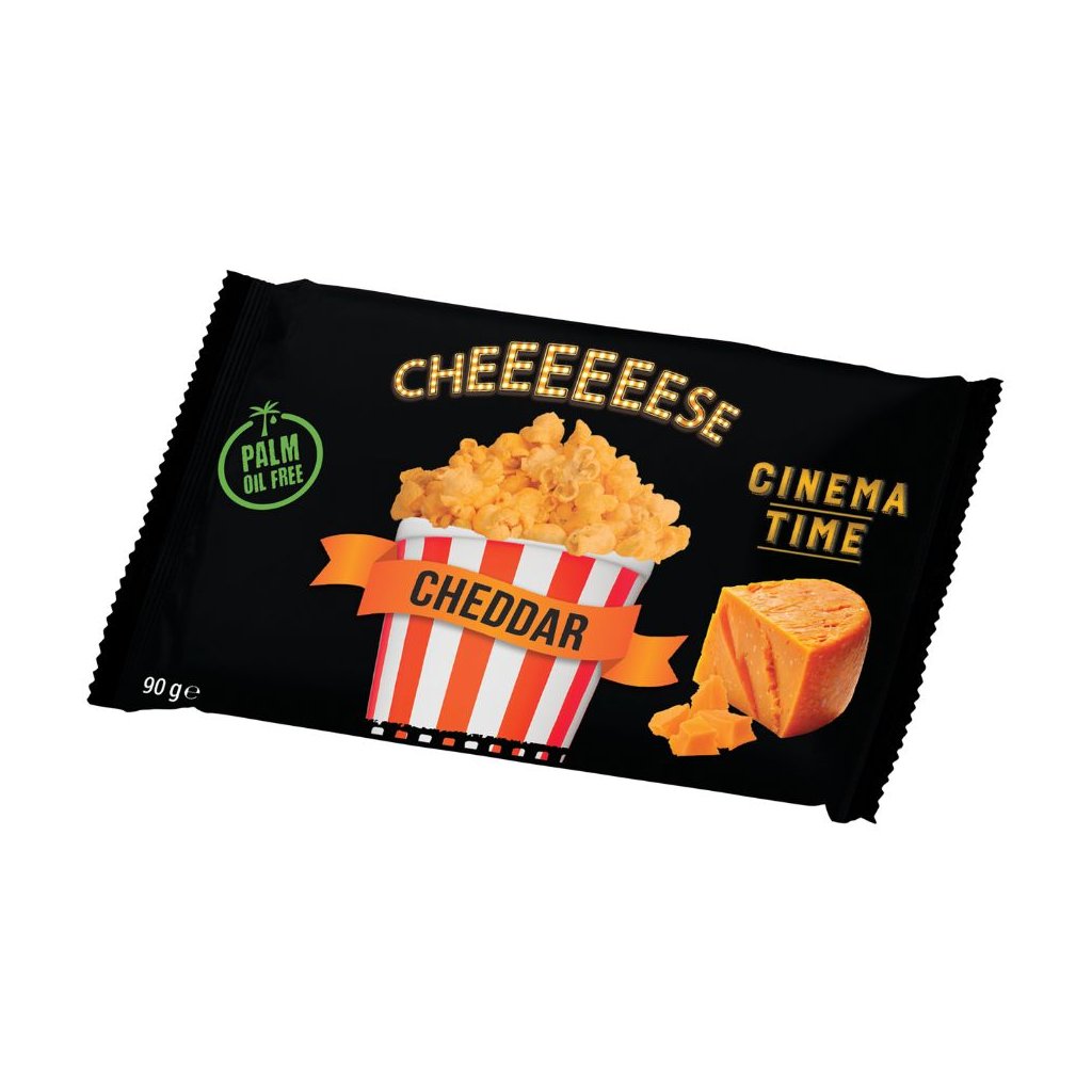 Cinema Time popcorn Cheddar je ideální volbou pro chvíle odpočinku. Bohatá sýrová chuť a křupavá textura zpříjemní každý filmový večer.