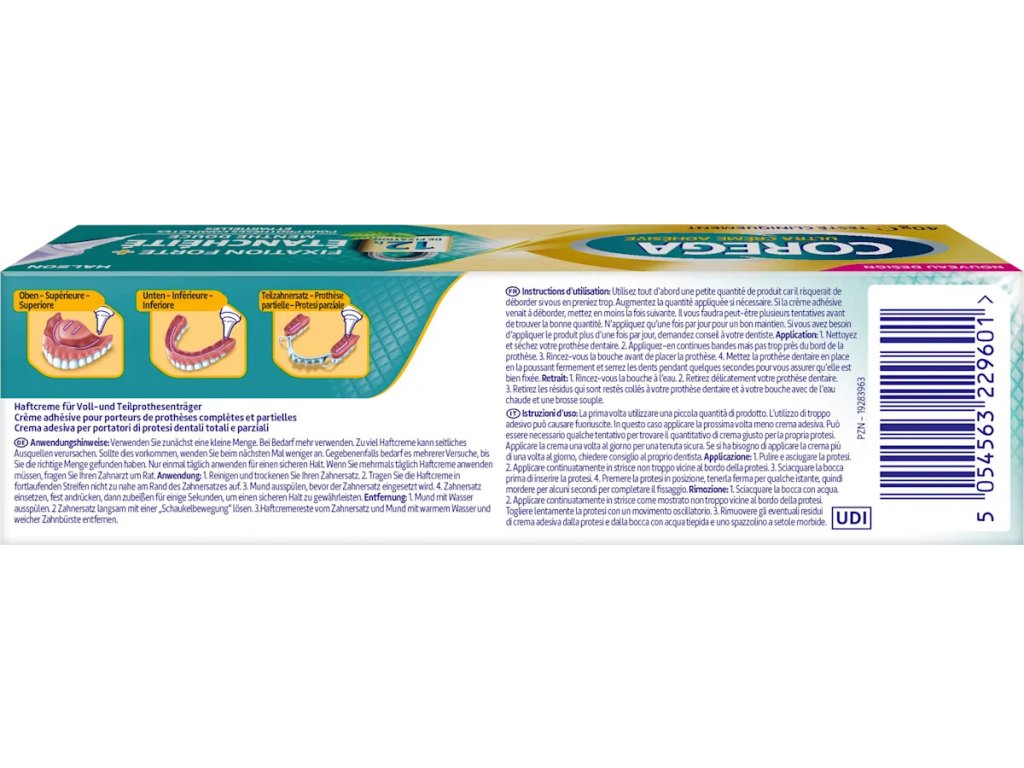 Pokud potřebujete používat fixační krém více než jednou denně, poraďte se se svým zubním lékařem.