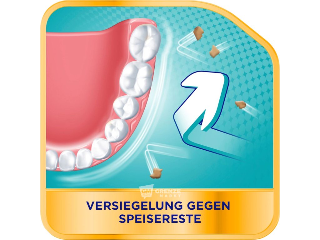 Vytváří těsnící vrstvu, která pomáhá bránit pronikání zbytků jídla mezi náhradu a dáseň.