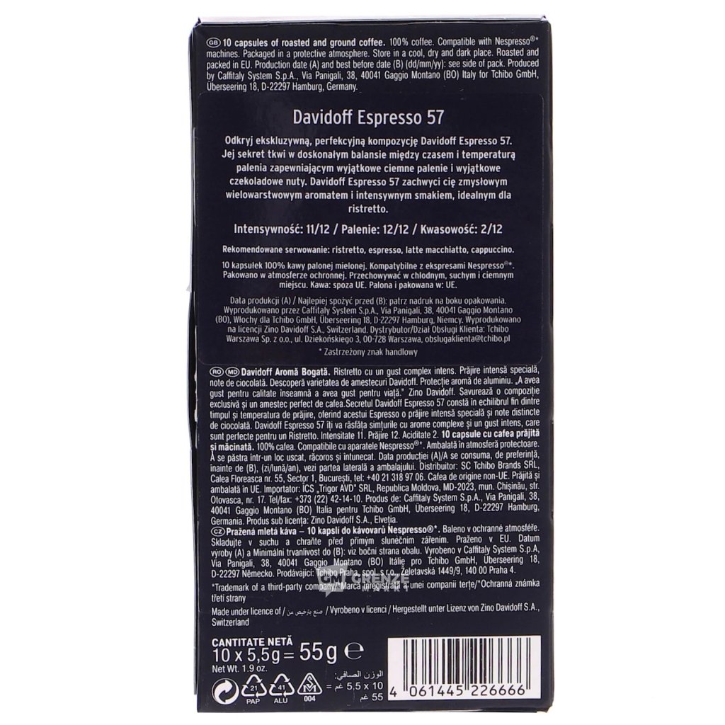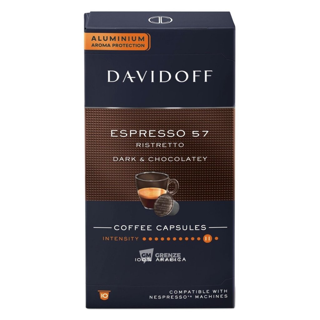 Davidoff Nespresso Espresso 57 10 kapslí je dokonalou kombinací času a teploty pražení, která přináší intenzivní espresso s nezaměnitelnou čokoládovou chutí. Tyto kapsle šíří vůni s vícevrstvými tóny a silnou chutí, která probudí všechny smysly hned od prvního doušku.