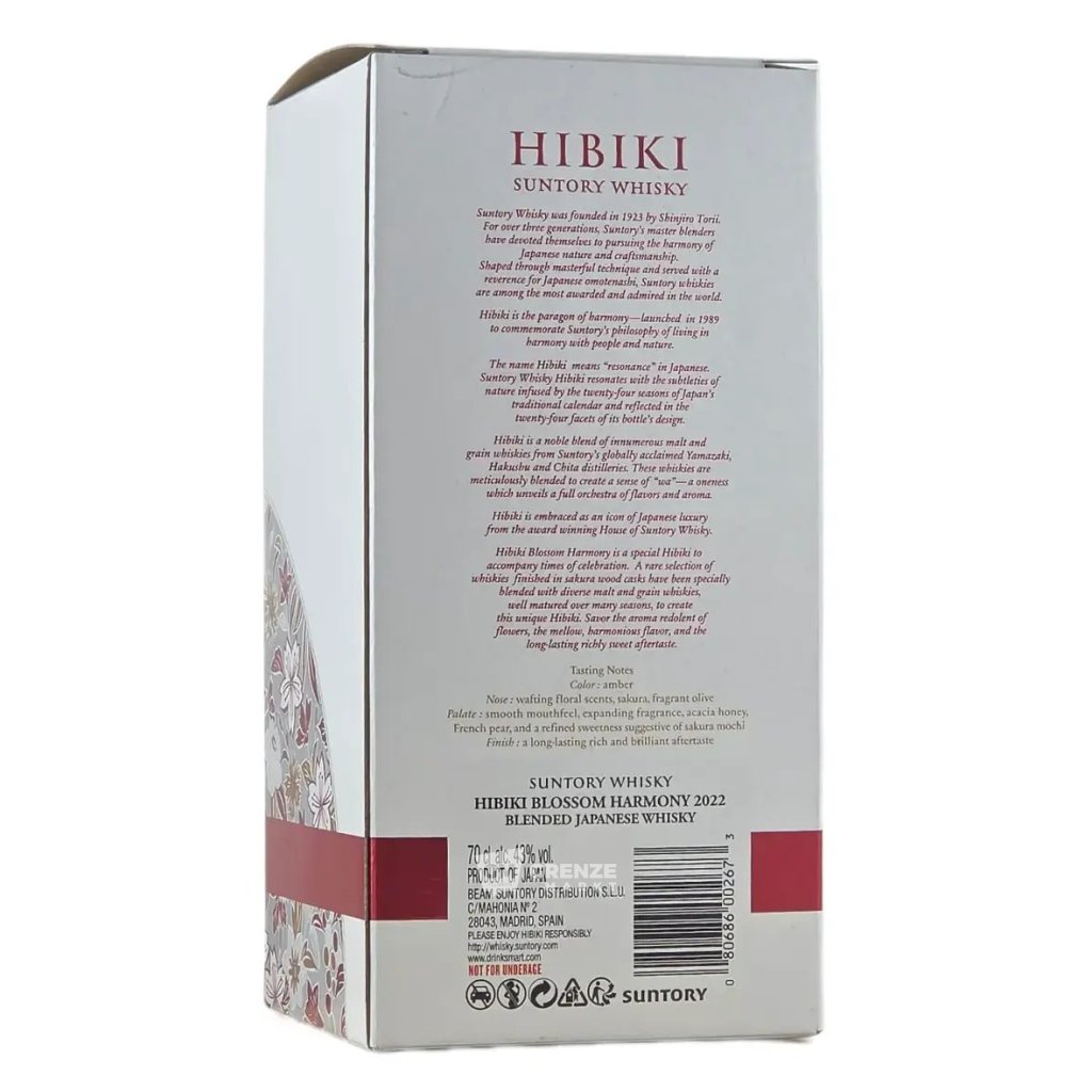 Suntory Hibiki Blossom Harmony Japanese Whisky 2022 ist die perfekte Wahl für Liebhaber feiner japanischer Whiskys. Das harmonische Aromaprofil und die elegante Verpackung machen ihn ideal zum Genießen oder Verschenken.