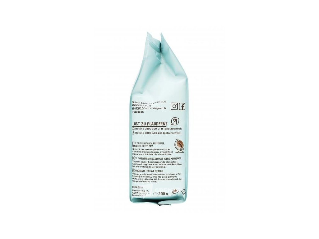 Balení: Sáček obsahuje 32 pads, každý cca 6,5–7 g, baleno vzduchotěsně, obal je recyklovatelný a šetrný k přírodě.