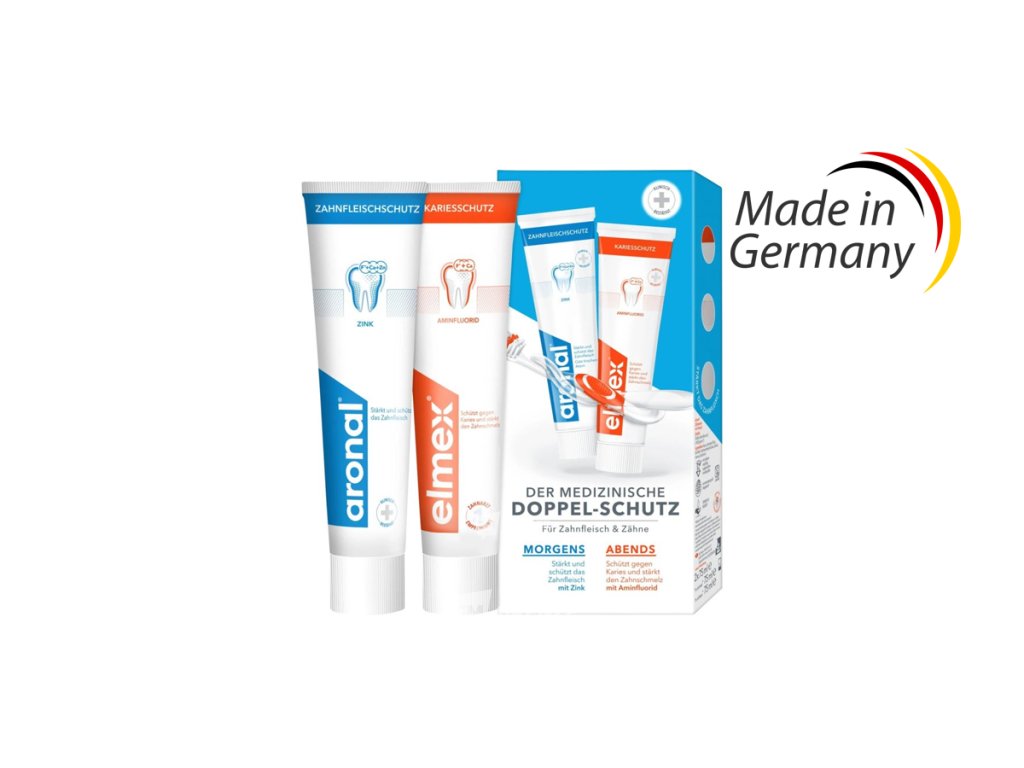Složení Aronal s Zinc Citrate pomáhá odstranit zubní plak a chrání dásně, zejména v oblasti dásní. Elmex s Aminfluorid vytváří dvojitý štít z vápníku a fluoridu, který remineralizuje sklovinu a účinně chrání před zubním kazem.
