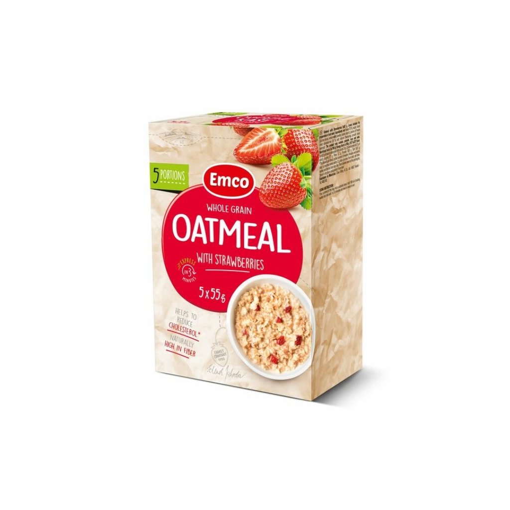 Příjemná kombinace jemných vloček a sladkých jahod potěší každý den. Emco ovesná kaše s jahodami 5×55 g je praktickou volbou pro moderní životní styl se zaměřením na vyváženou stravu.