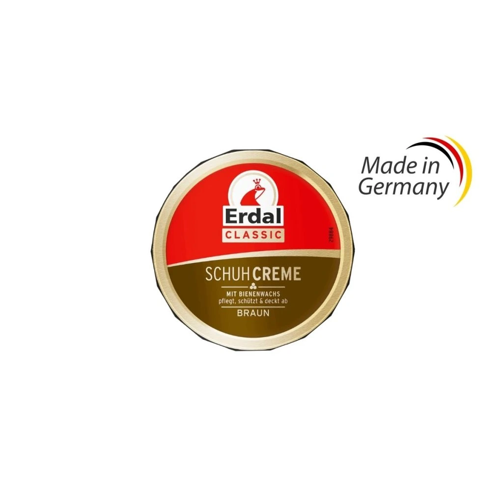 Erdal Classic krém na obuv hnědý 75 ml (dóza) je komplexní řešení péče o koženou obuv od renomované německé značky. Díky složení s přírodním včelím voskem produkt vyživuje, chrání a obnovuje barvu obuvi. Krémová textura se snadno používá, neobsahuje rozpouštědla a je vhodná pro různé typy kůže – od hladké až po silnou, čímž dodává botám elegantní a lesklý vzhled.