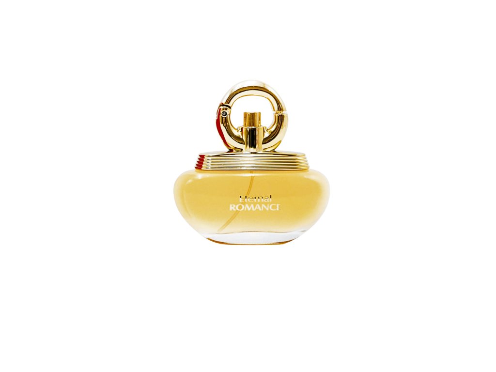 Eternal Romance parfémovaná voda pro ženy 100 ml otevírá cestu plnou emocí. Hlava se rozvíjí svěžími tóny citrusů a jemných květin, které přinášejí pocit radosti a svěžesti. V srdci se odhaluje jemnost a romantika jasmínu a růže, připomínající křehké chvíle ženské něhy. Základ s hřejivým pižmem a smyslnou vanilkou zanechává nezapomenutelný dojem, který přetrvává jako něžný dotek v paměti.