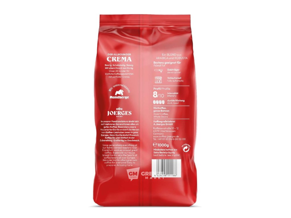 Superbar Crema od Gorilla není jen špičkové espresso, ale také skvělý základ pro cappuccino, latte macchiato nebo lungo. Díky bohatému aroma, husté krémě a dlouhotrvající sladké dochuti je tato káva vhodná jak pro plně automatické kávovary, tak i pro pákové stroje.