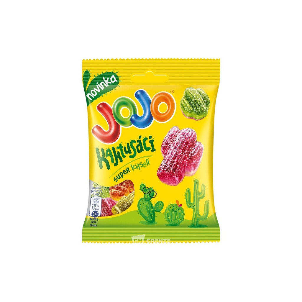 JOJO Kaktusáci super kyselé bonbóny potěší všechny milovníky výrazně kyselých želé sladkostí. Dopřejte si jedinečnou kombinaci ovocné chuti a měkké textury kdykoliv během dne.