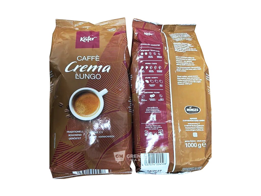 Käfer Caffè Crema Lungo zrnková káva 1 kg přináší sofistikovaný zážitek z kávy díky pečlivě vybraným zrnům z Asie, Střední a Jižní Ameriky. Tradiční bubnové pražení dodává kávě jemnou karamelovou chuť s kulatým ovocným dozvukem a harmonickým charakterem.