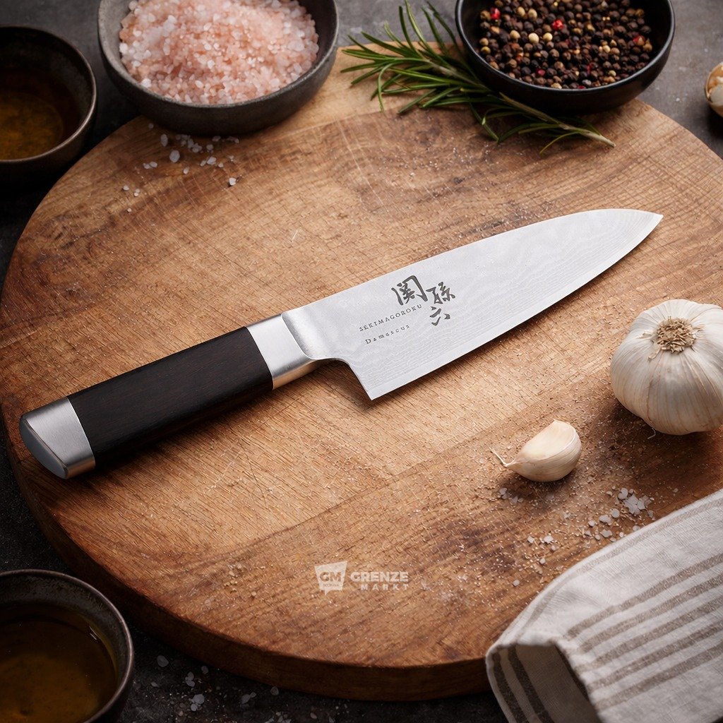 KAI Sekimagoroku Santoku damascénský nůž 145 mm AE5201 je ztělesněním staleté tradice výroby čepelí ve městě Seki – legendárním centru japonských mečů. Již při prvním uchopení pocítíte dokonalou rovnováhu, precizní ostrost a klidnou krásu damaškové oceli připomínající historické katany. Nejde jen o kuchyňský nůž, ale o vrcholné řemeslné dílo pro ty, kteří si váží kulinářského umění.