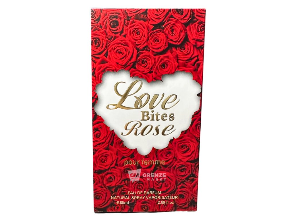 Love Bites Rose Eau de Parfum přináší květinově-ovocnou kompozici s růží, sladkými tóny a ovocnou svěžestí. Hlava se otevírá marockou růží, která navozuje něžný a svůdný pocit. Srdce parfému odhaluje harmonii květin a sladkého ovoce, která zvýrazňuje ženskou přitažlivost. Základ tvoří jantar a pačuli, které dodávají hřejivost, hloubku a dlouhotrvající dojem. Tato vůně je inspirována krásou růží – symbolem lásky a svůdnosti.