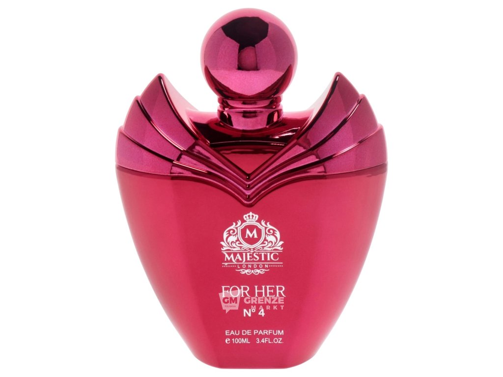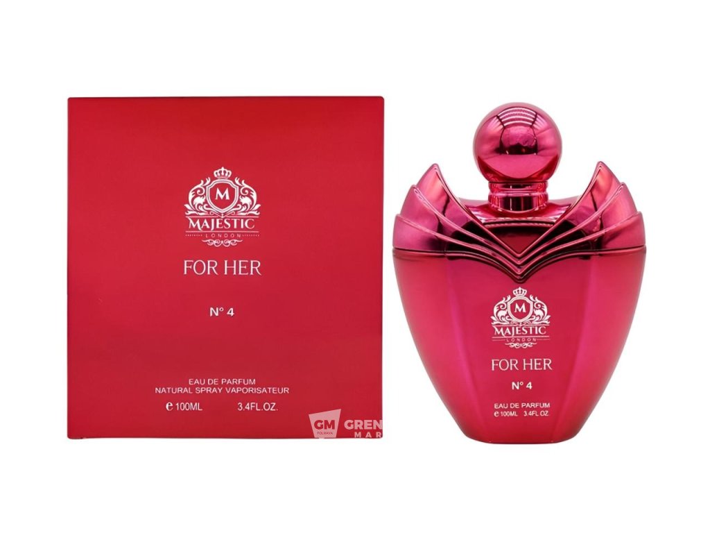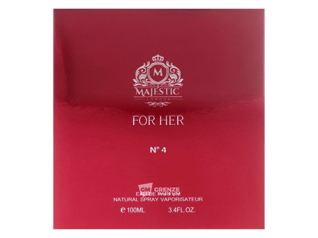 Objevte tajemné kouzlo Majestic For Her No. 4 parfémovaná voda pro ženy 100 ml, svůdnou vůni v moderním stylu, která je plná energie a přitažlivosti. Je určena pro ženy, které touží zanechat nezapomenutelný dojem a vyjádřit svou jedinečnost.