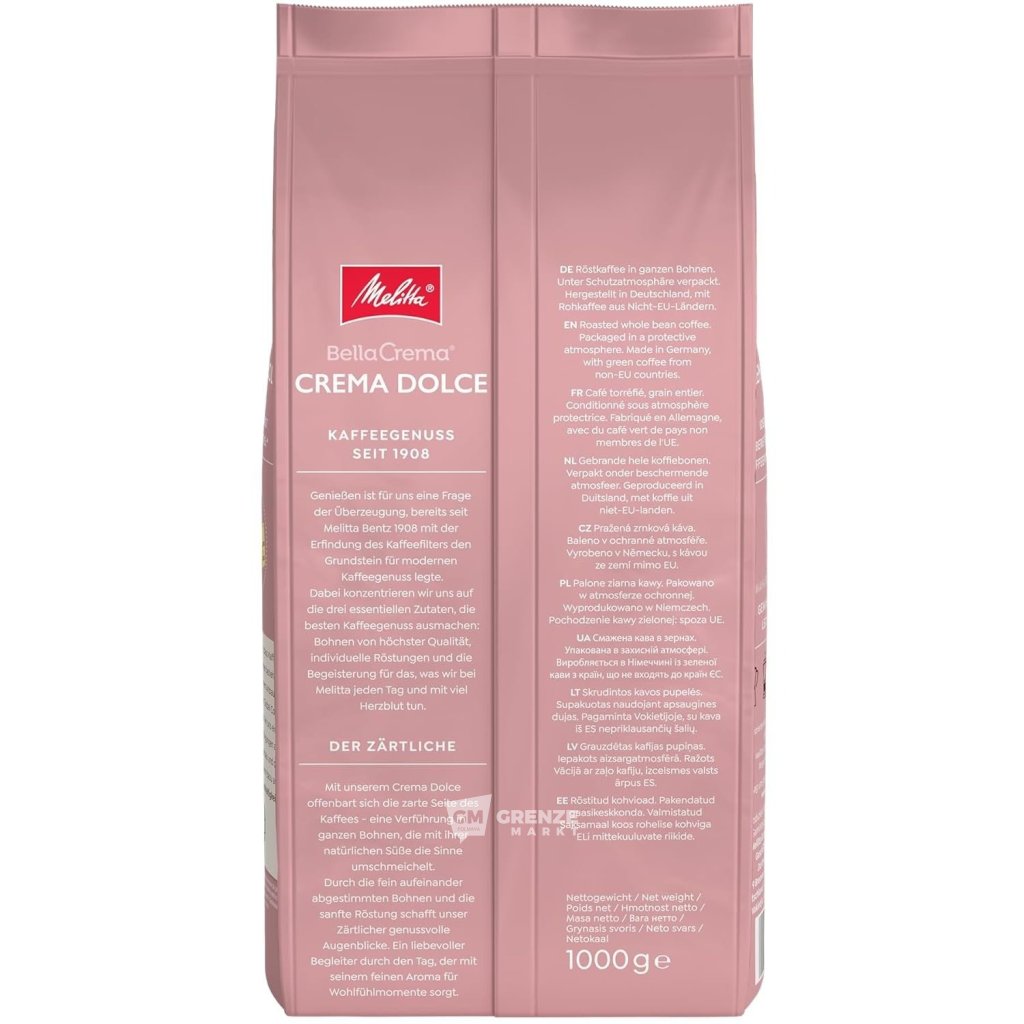 Melitta BellaCrema Crema Dolce zrnková káva 1 kg přináší jemný a vytříbený kávový zážitek již od prvního doušku. Tato zrnková káva se vyznačuje hladkou chutí, vyváženým profilem a přirozenou sladkostí, ideální pro milovníky jemné, ale aromatické kávy.