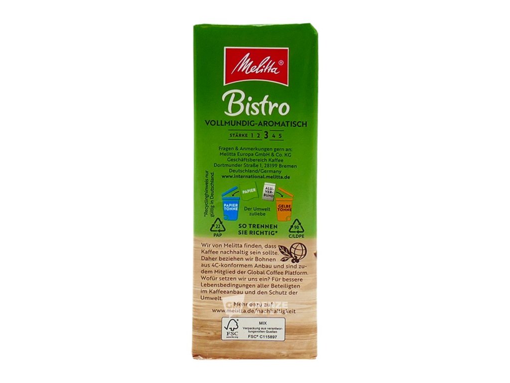 S Melitta Bistro – tradiční praženou a mletou kávou z Německa – zažijete harmonii mezi intenzitou a jemnou vůní. Každý šálek je výsledkem dlouholetých zkušeností s pražením a moderní technologie, díky čemuž si můžete vychutnat plnou, vyváženou a lahodnou chuť.