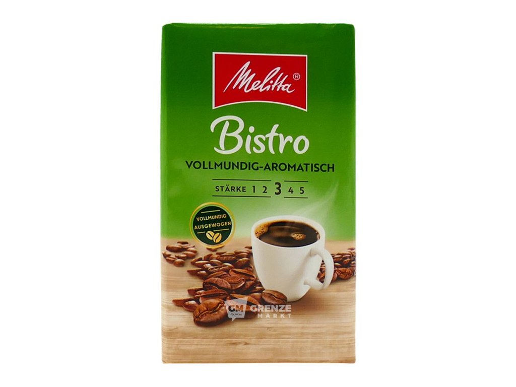 Šálek Melitta Bistro Vollmundig Aromatisch mletá káva 500 g vám každé ráno dodá energii a pohodu. Užijte si německou kvalitu v každém doušku plné, aromatické kávy.