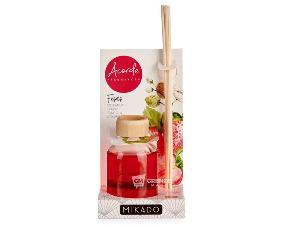 Mikado difuzér s tyčinkami Jahody 50 ml přináší do vašeho prostoru svěží vůni zralých jahod. Díky kompaktnímu a elegantnímu designu je produkt ideální pro vytvoření relaxační atmosféry v obývacím pokoji, ložnici nebo kanceláři. Skleněná láhev v kombinaci s difuzními tyčinkami zajišťuje rovnoměrné a dlouhodobé šíření vůně.