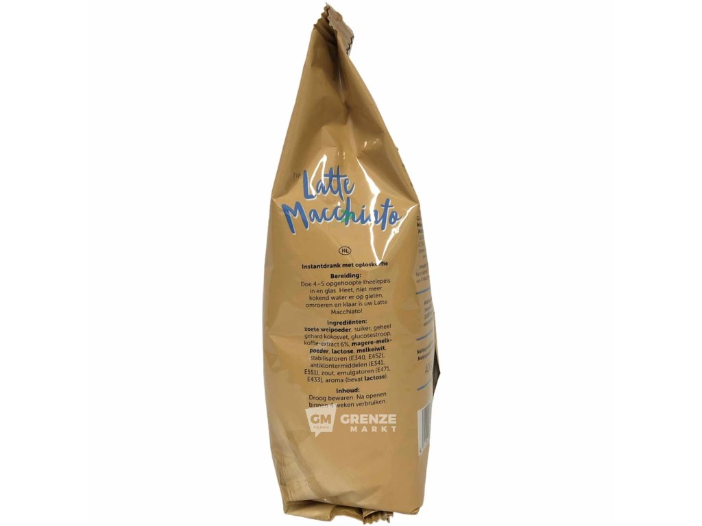 Sladká syrovátková sušenina, cukr, plně ztužený kokosový tuk, glukózový sirup, kávový extrakt 6 %, sušené odstředěné mléko, laktóza, mléčná bílkovina, stabilizátory (E340, E452), protispékavá látka (E341, E551), sůl, emulgátory (E471, E433), aroma (obsahuje laktózu).