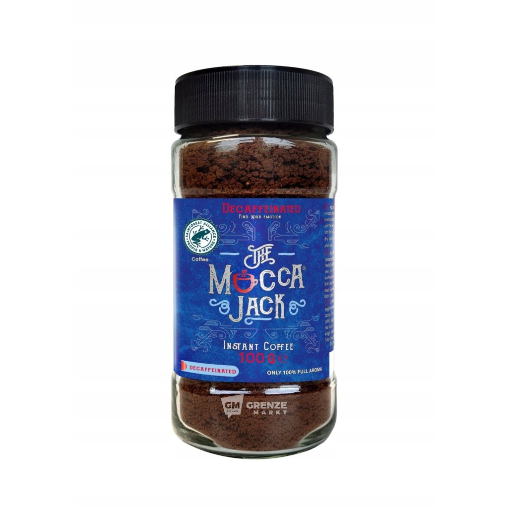 Mocca Jack Decaf instantní káva 100 g je ideální volbou pro milovníky kávy, kteří si chtějí vychutnat plnou chuť a aroma kávy, ale zároveň omezit příjem kofeinu. Díky speciálnímu procesu dekofeinizace si zachovává přirozené kávové aroma i bohatou chuť. Hodí se k vychutnání kdykoliv během dne.