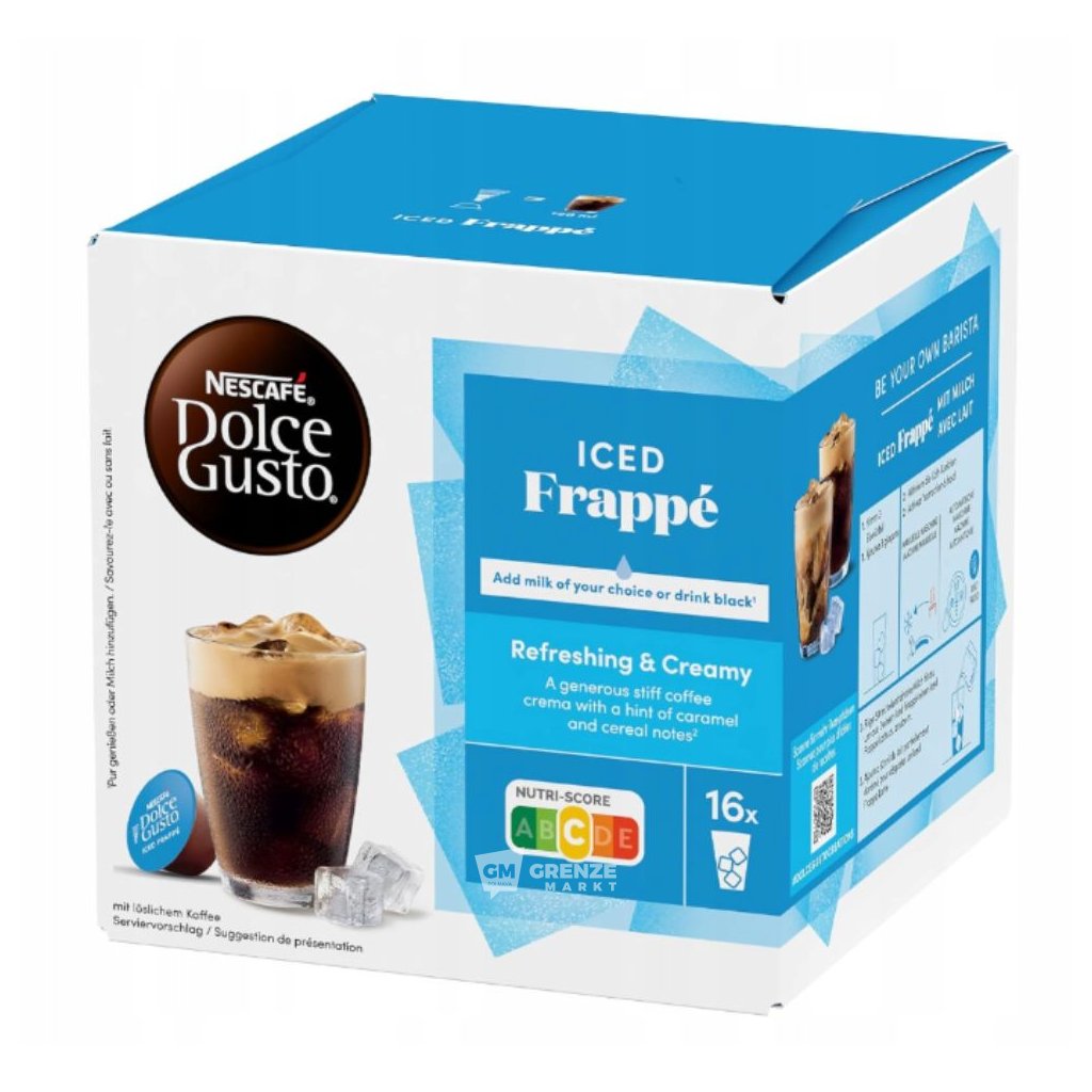 Nescafé Dolce Gusto Iced Frappé 16 kapslí nabízí osvěžující zážitek z ledové kávy, ideální pro teplé dny. Harmonická kombinace kávy s jemnými obilnými a karamelovými tóny přináší vyváženou a příjemnou chuť.