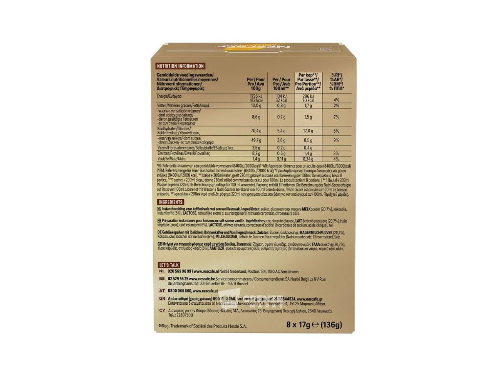 Nescafé Vanilla typ Latte instantní káva 8 sáčků x 17g