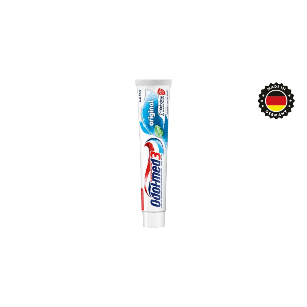 Odol Med3 Original 75 ml je kvalitní zubní pasta, která poskytuje komplexní ochranu ústní dutiny. Díky složení 3v1 pomáhá posilovat zubní sklovinu, chránit dásně a zajišťuje svěží dech díky osvěžující mátové chuti. Tato zubní pasta byla klinicky ověřena a při pravidelném používání dvakrát denně poskytuje 24hodinový štít proti škodlivým účinkům cukrových kyselin. Je vhodná pro celou rodinu a představuje ideální volbu pro každodenní péči o zdravé zuby.