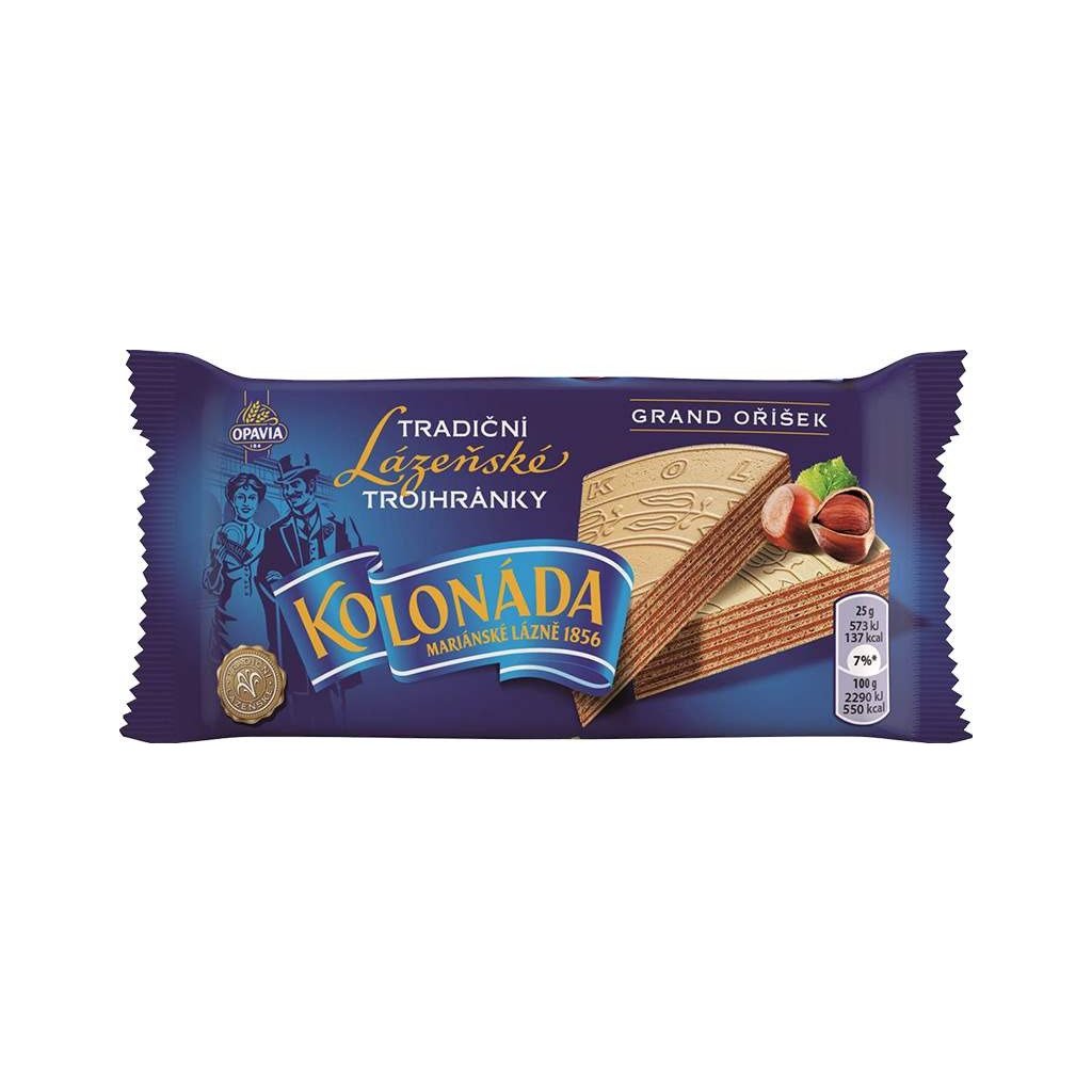 Opavia Kolonáda Trojhránky Oříšek 50 g jsou dokonalou kombinací lehké křupavé oplatky a lahodné lískooříškové náplně, která tvoří až 80 % obsahu. Každé sousto přináší vyváženou sladkost, jemnou oříškovou chuť a příjemně se rozplývá na jazyku, ideální ke kávě nebo čaji během dne.