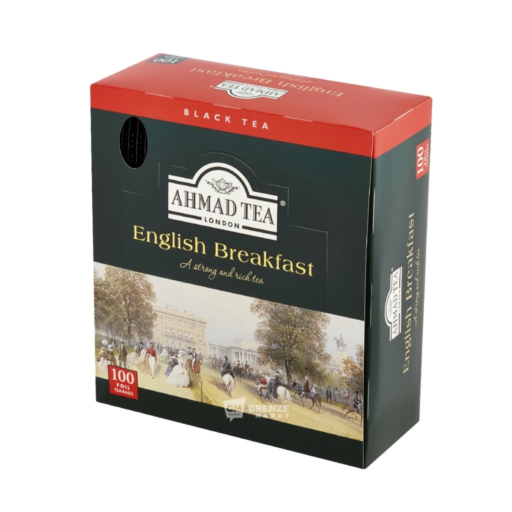 Ahmad Tea English Breakfast czarna herbata 100 x 2 g to klasyczna angielska czarna herbata o wyrazistym, a jednocześnie łagodnym smaku. Zbalansowane połączenie herbaty Assam o nutach słodowych, świeżej herbaty cejlońskiej oraz aromatycznej herbaty z Kenii tworzy napar pełny, rozgrzewający i pobudzający – idealny na poranek, w ciągu dnia lub po południu, doskonały również z dodatkiem mleka.