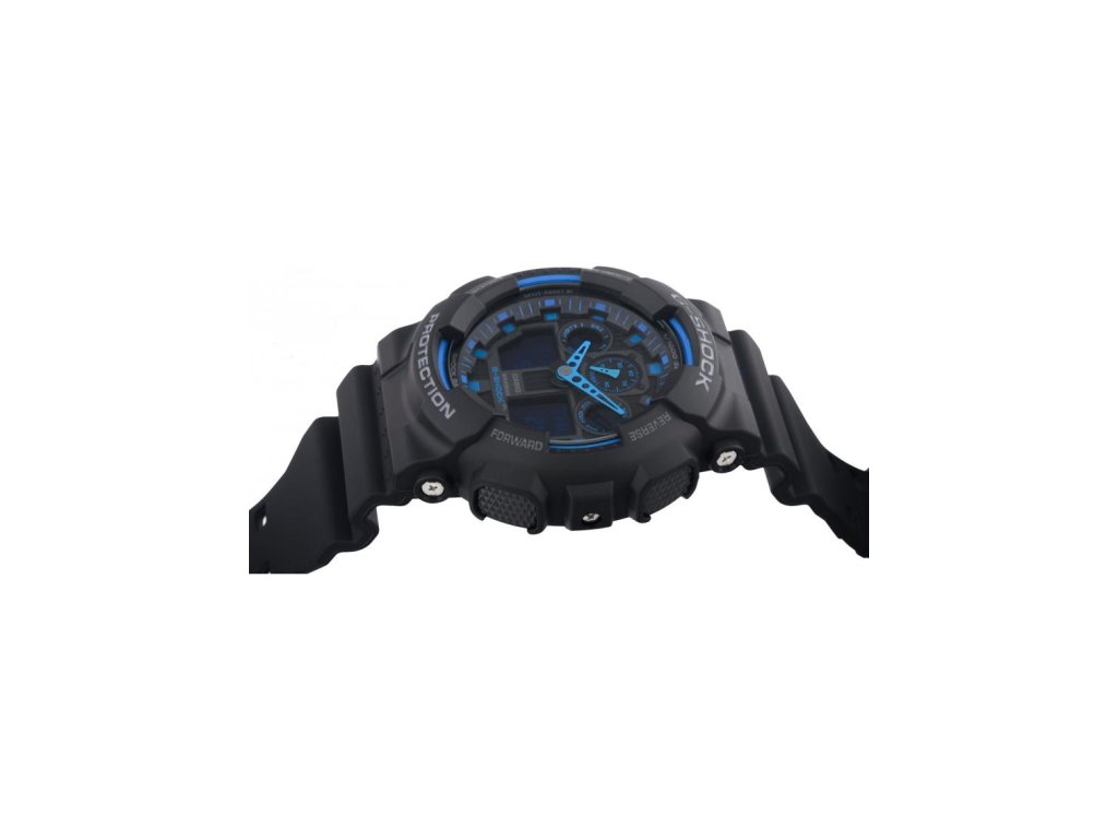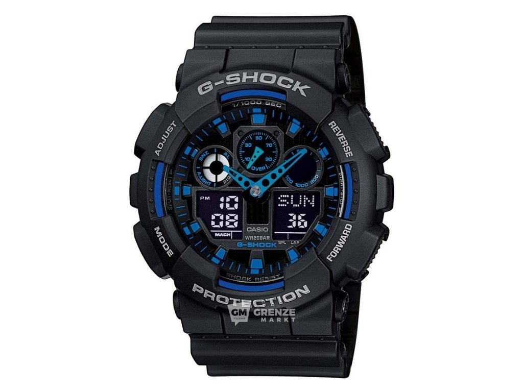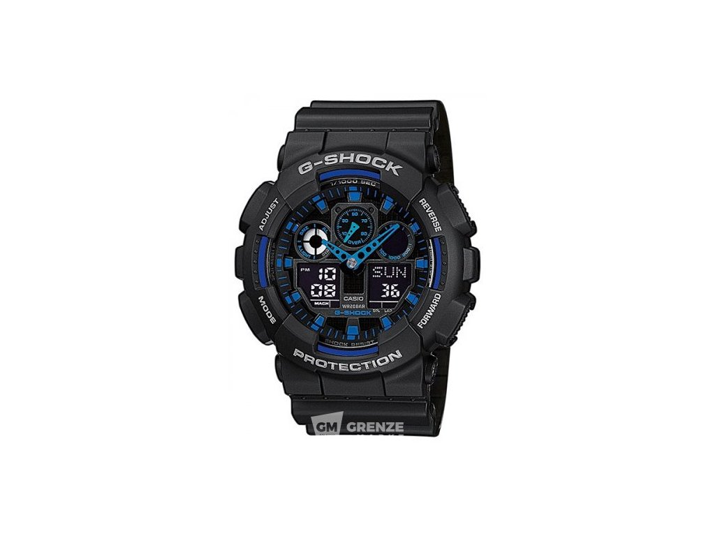 Casio G-Shock GA 100-1A2 mají kombinovaný ciferník (analogový a digitální), který zobrazuje datum, den v týdnu, stopky, při jejichž použití lze z číselníku odečíst také rychlost pohybujícího se předmětu na předem známé dráze, budík a spoustu dalších funkcí. Pouzdro hodinek, včetně řemínku, je pryžové. Ciferník chrání minerální sklíčko. Díky průměru pouzdra 51 mm se řadí mezi rozměrově vetší hodinky. Vodotěsnost tohoto modelu je 200M, s hodinkami tedy můžete bez problémů plavat, či se dokonce potápět.