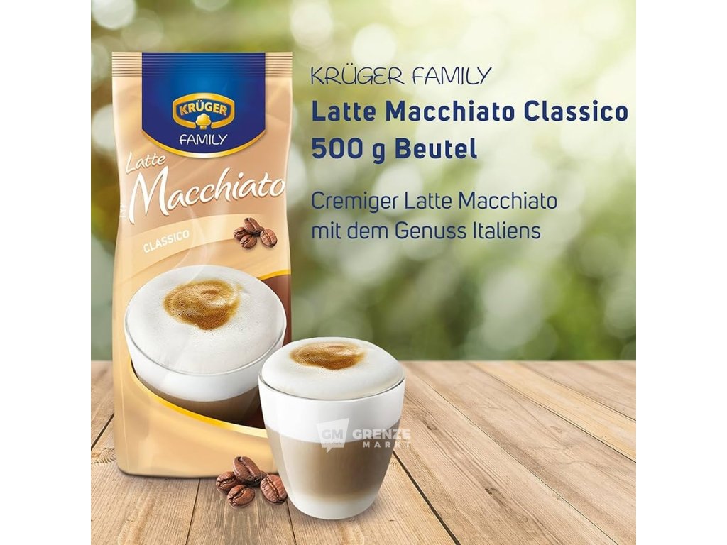 Krüger Cappuccino Latte Macchiato kawa rozpuszczalna 500g łączy delikatną słodycz z nutą espresso. To doskonały wybór na chwile relaksu o każdej porze dnia.