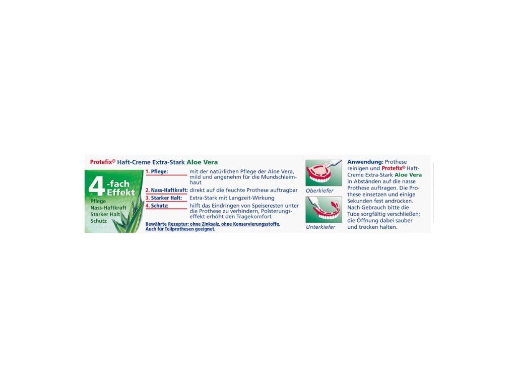 Protefix Aloe Vera fixační krém na zubní náhrady 47 g přináší maximální jistotu díky extra silné přilnavosti s technologií Nass-Haftkraft. I na vlhkém povrchu působí okamžitě, pevně fixuje a zabraňuje pronikání zbytků jídla pod zubní náhradu. Díky přírodnímu extraktu z Aloe Vera navíc zklidňuje a pečuje o ústní sliznici, což zajišťuje příjemný pocit při každodenním používání.