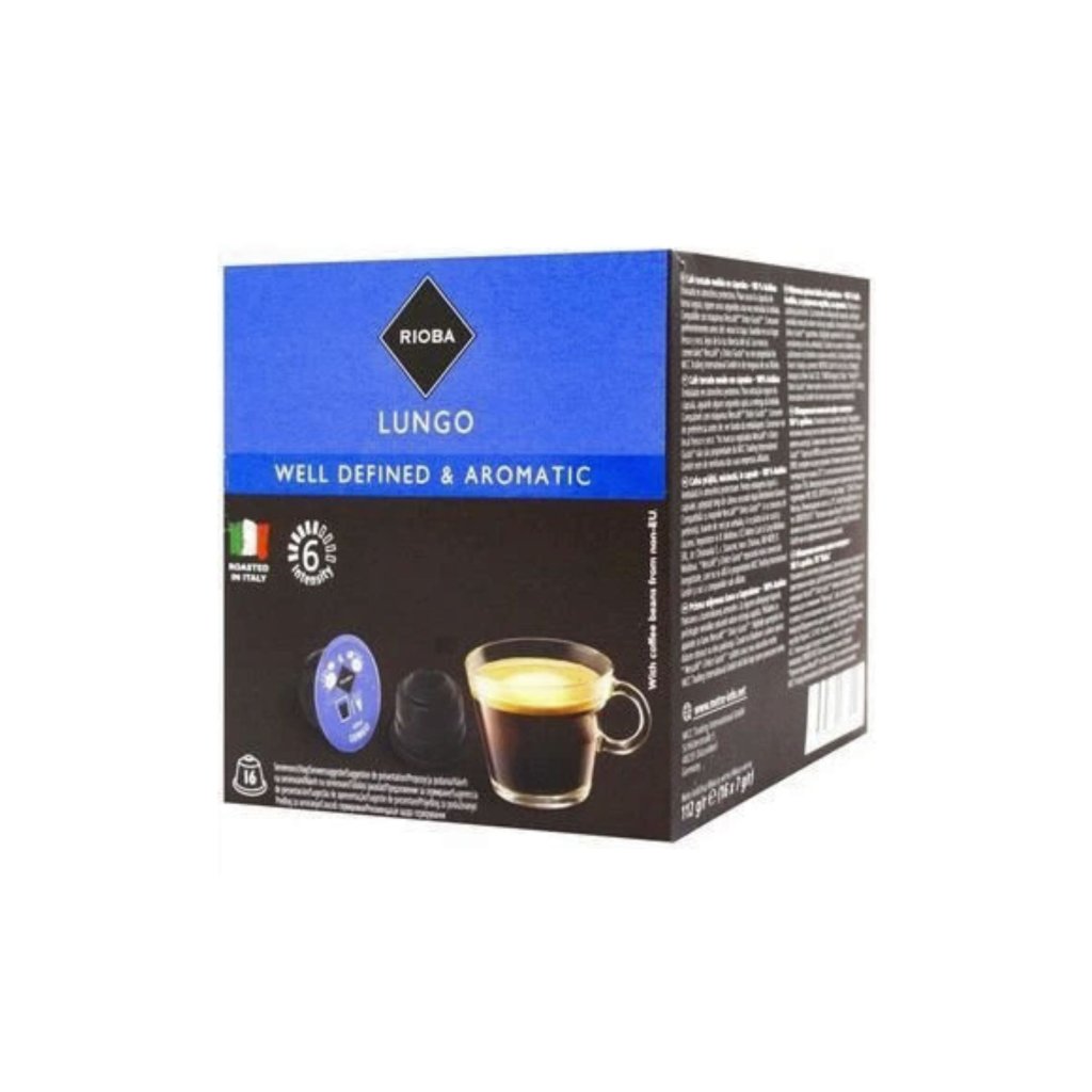 Rioba Lungo vám umožní snadno si vychutnat pravou italskou kávu doma i v kanceláři. Praktické kapsle kompatibilní s kávovary Nescafé® Dolce Gusto® zajišťují rychlou a pohodlnou přípravu.