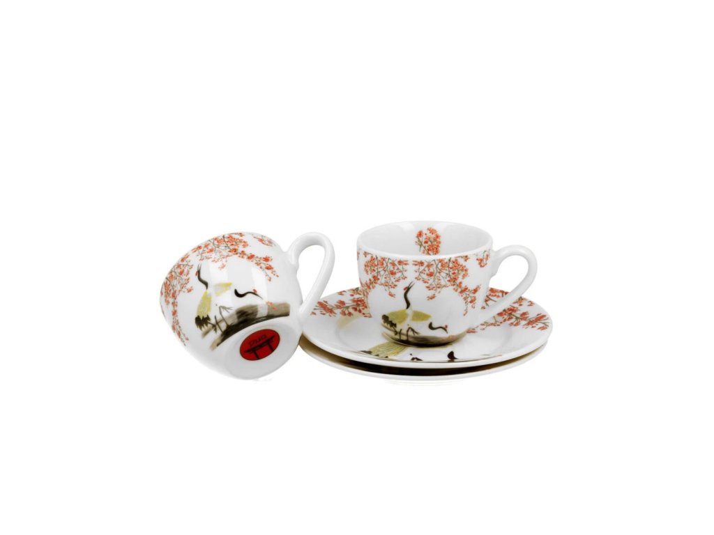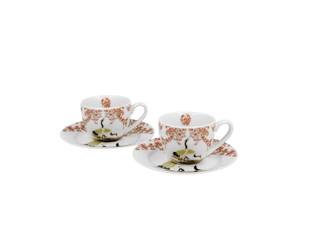 Sada šálků s podšálky 2 ks 90ml Sakura přináší do každodenního servírování espressa eleganci japonského umění. Jemné motivy sakury a jeřábů dodávají setu výjimečný styl a zároveň vytvářejí harmonický vizuální zážitek. Ideální jako dárek i pro stylové domácí používání.