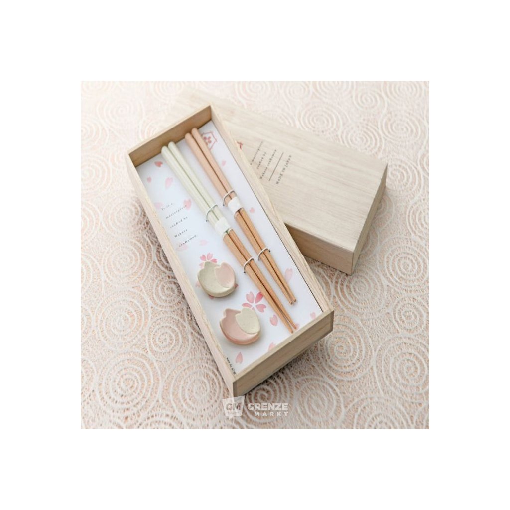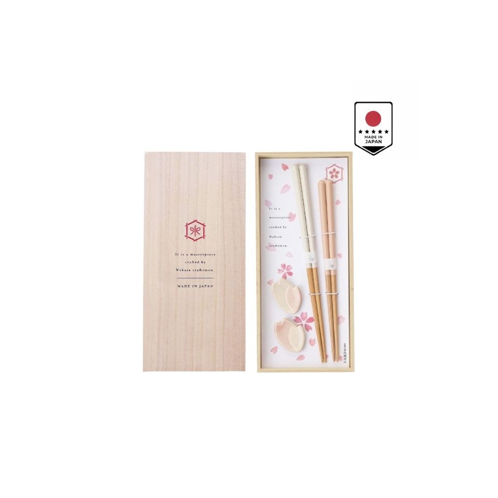 Sakura sada jídelních hůlek pro pár s podložkami v dřevěné krabičce z paulovnie