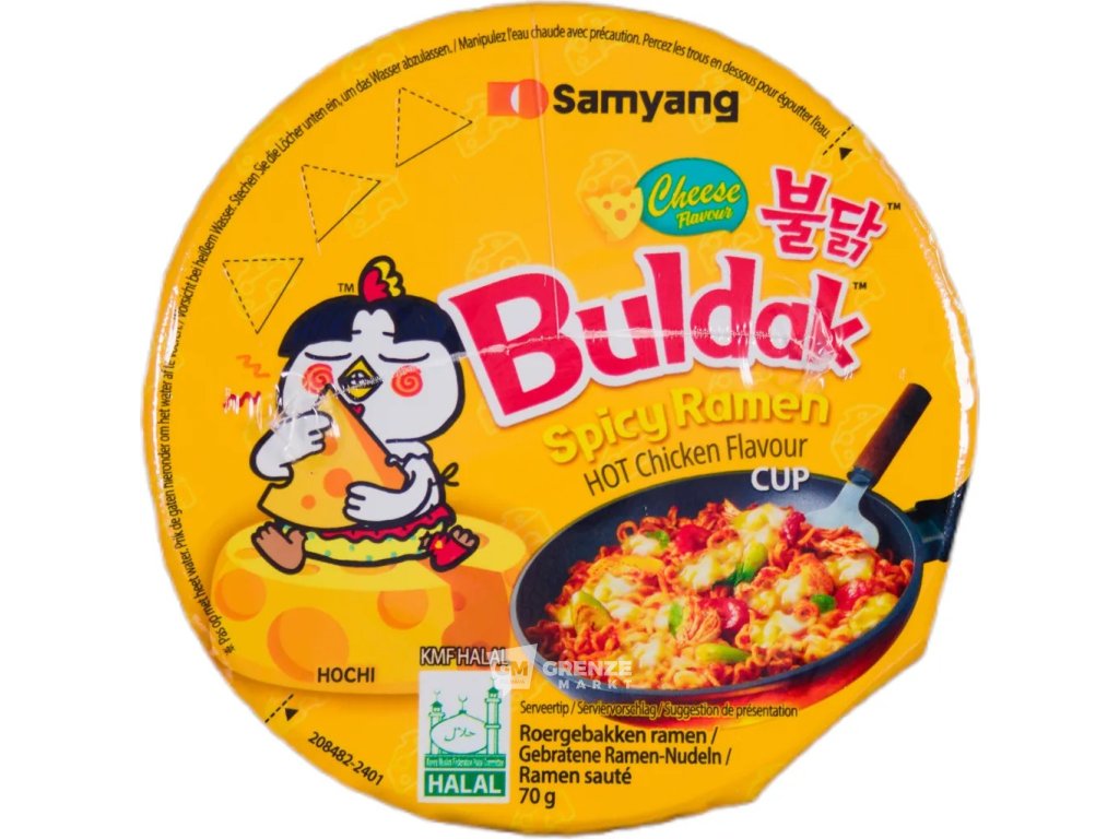 Samyang Buldak Cheese pikantní instantní nudle kelímek 70 g jsou ideální volbou pro milovníky korejské kuchyně, kteří hledají rovnováhu mezi pálivostí a jemnou sýrovou krémovostí. Pružné nudle dokonale absorbují pikantní omáčku z kuřecího vývaru a sýra, čímž vytvářejí výraznou, harmonickou chuť. Ať jste doma, v práci nebo na cestách, během několika minut si můžete vychutnat plnohodnotné a chutné jídlo.