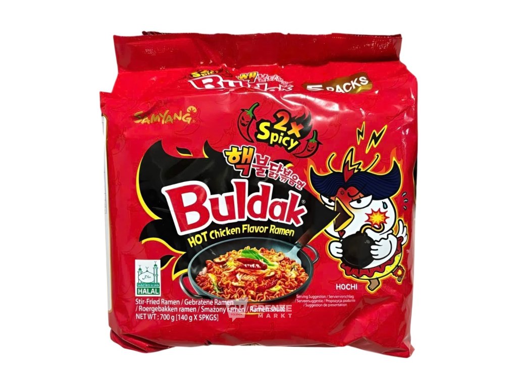 Pokud jste milovníkem pálivých chutí, Samyang Buldak Hot Chicken Ramen 2x Spicy instantní nudle 5×140 g vás jistě nadchnou. Každá pružná nudle s dvojnásobně pálivou kuřecí omáčkou přináší autentický korejský zážitek – horký, vzrušující a nezapomenutelný. Stačí jen pár minut a můžete si vychutnat dokonalé jídlo jako z korejské restaurace.