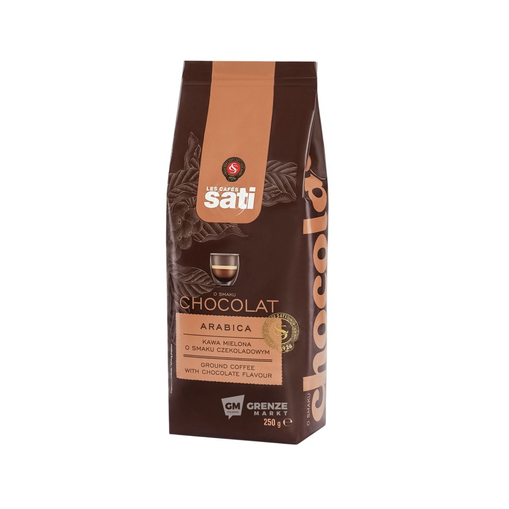 Se Sati Chocolate mletá káva se kvalitní Arabica povyšuje díky jemnému čokoládovému aroma, které vytváří klasickou, nadčasovou chuť. Tato aromatizovaná káva je oblíbená pro svou harmonii a jemnost.