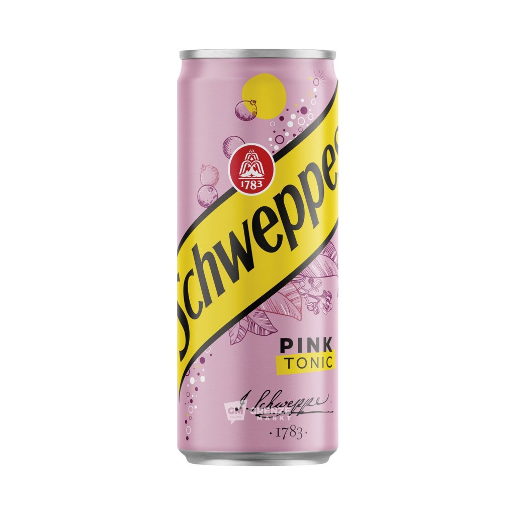 Schweppes Pink Tonic plechovka 330 ml – růžový tonic s ovocnou svěží chutí