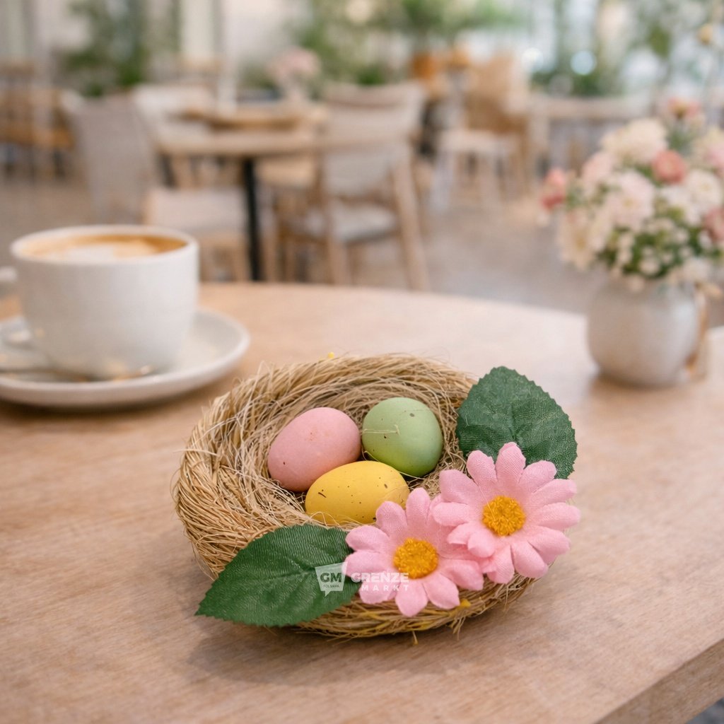 Věnec je ručně vyrobené dekorativní doplňek z přírodní slámy s jemnými detaily, který zachovává rustikální a autentický styl. Díky kompaktním rozměrům se slámový velikonoční věnec snadno kombinuje s různými sezónními dekoračními koncepty na trhu EU, od minimalistického po venkovský styl.