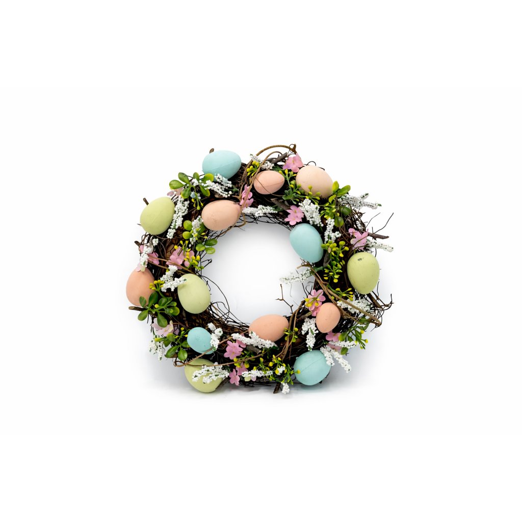 Slámový velikonoční věnec L20M003 33 cm přináší přírodní a jemně elegantní vzhled do velikonoční výzdoby. Kombinace slaměného základu a dekorativních detailů v pastelových barvách vytváří harmonický a svěží dojem.