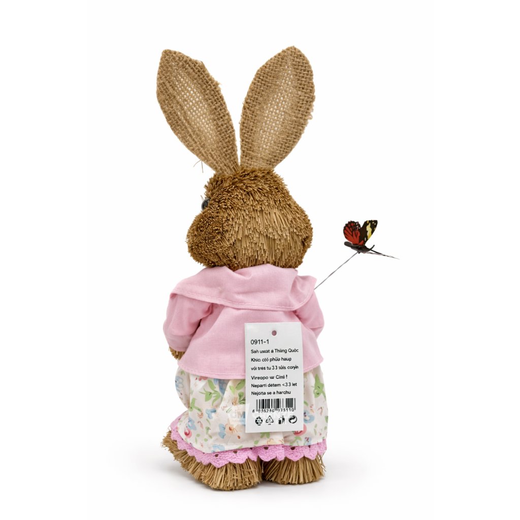 Slámový velikonoční zajíc holka 0731-11 28 cm přináší hřejivý a roztomilý dojem už na první pohled. Tvarování malé holčičky v šatech s květinovým motivem v pastelových barvách, jemná růžová bunda a drobný motýlek vytvářejí harmonický celek, který se stane výrazným velikonočním dekoračním prvkem.