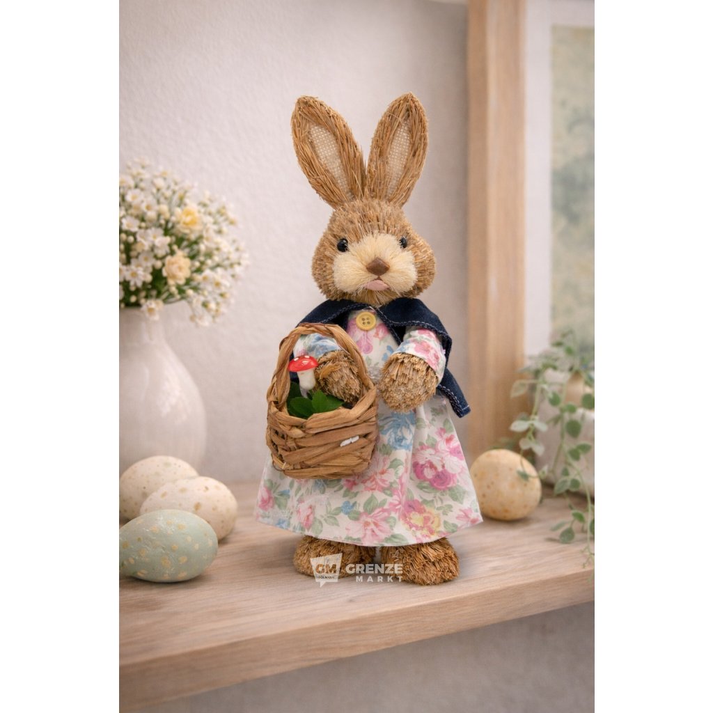 Slámový velikonoční zajíc holka S25-03 28 cm je vkusná dekorace pro velikonoční období, která přináší do interiéru přirozený vzhled a útulnou atmosféru evropského stylu. Na první pohled zaujme jemným provedením a roztomilým dívčím motivem, díky čemuž se hodí do různých typů prostor.