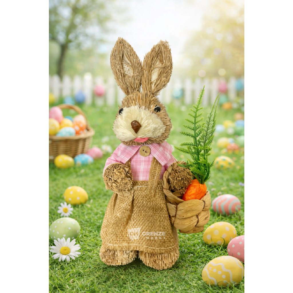 Slámový velikonoční zajíc holka je ideální volbou pro elegantní a přírodní velikonoční výzdobu.